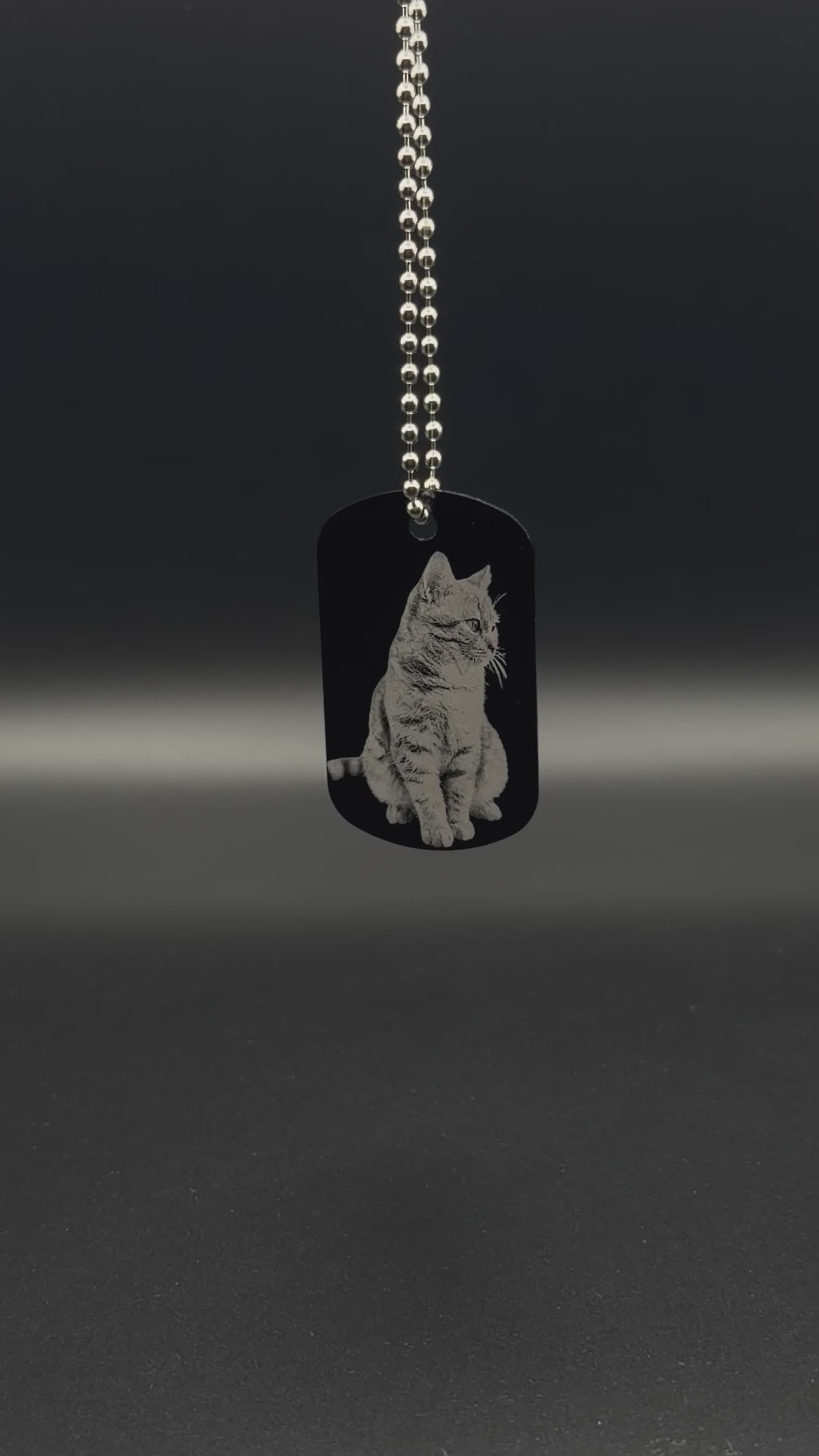Unsere personalisierte Halskette / Schlüsselanhänger wird mit deinem Wunschfoto und optionalem Text hochwertig per Laser graviert.